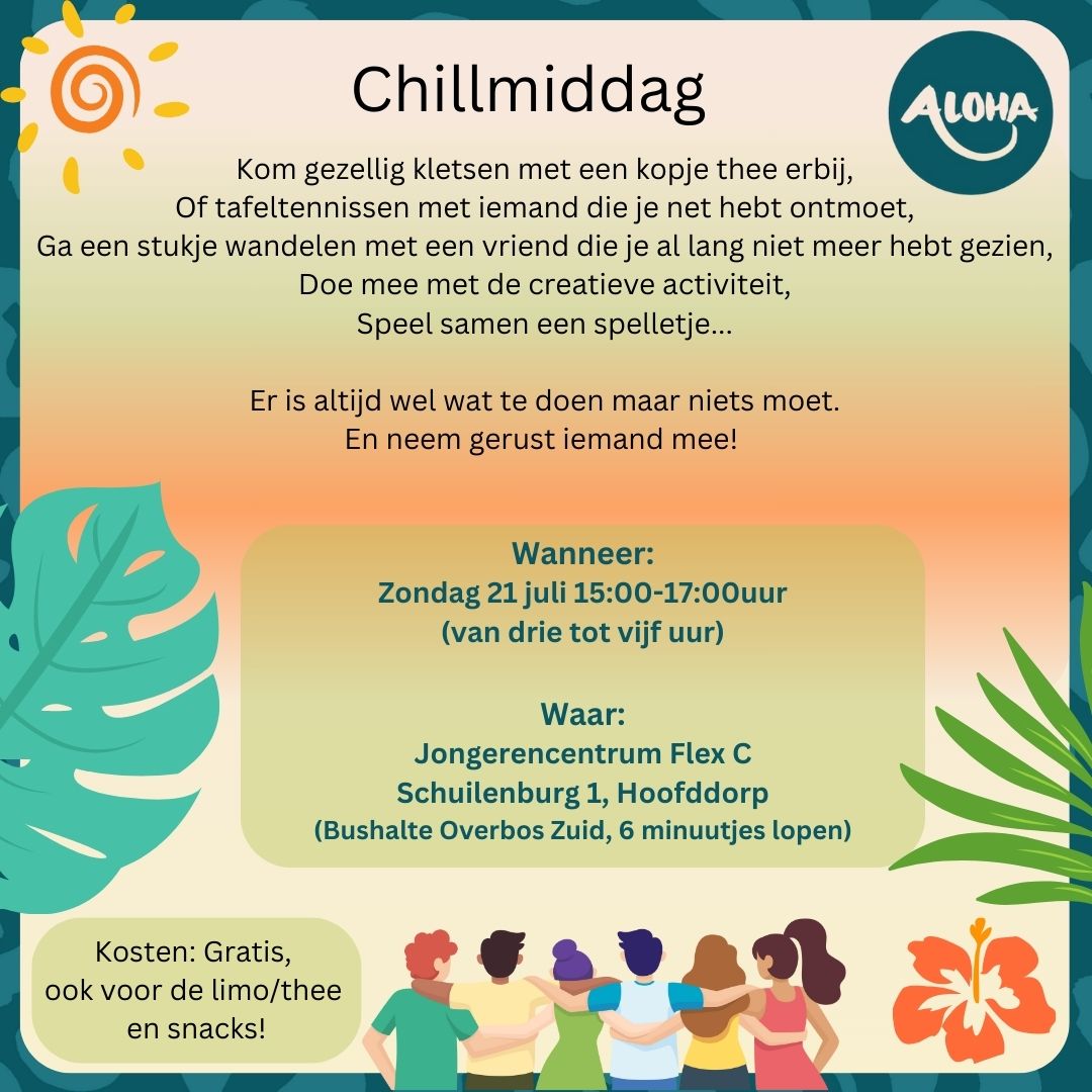 😊😎Kom ook naar de chill-middag in Hoofddorp 🎶🍹🍿🎨