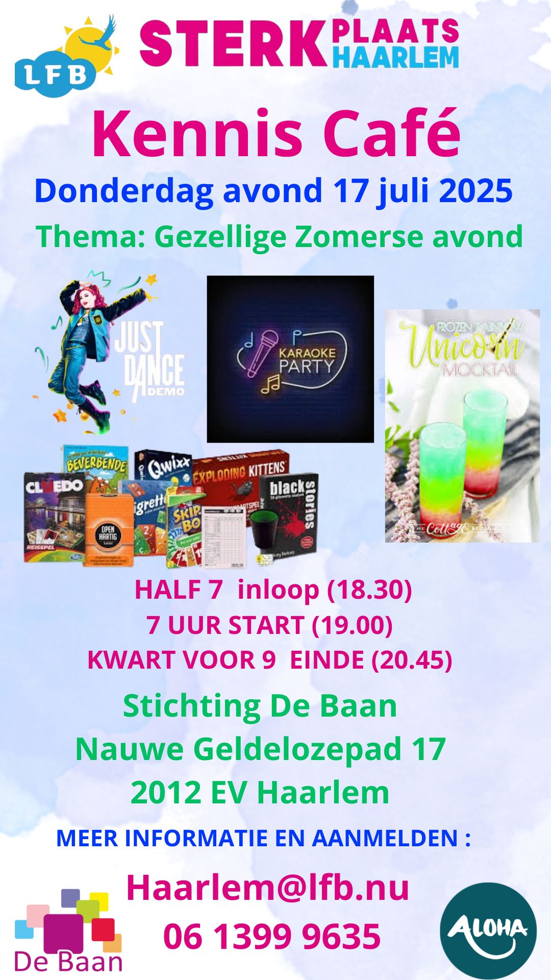 Op donderdagavond 17 juli 2025 organiseren Aloha en de LFB samen een speciale editie van het KennisCafé met als thema: Gezellige Zomerse Avond. Dit wordt de laatste bijeenkomst voor de zomervakantie, dus we maken er samen een extra feestelijke avond van!